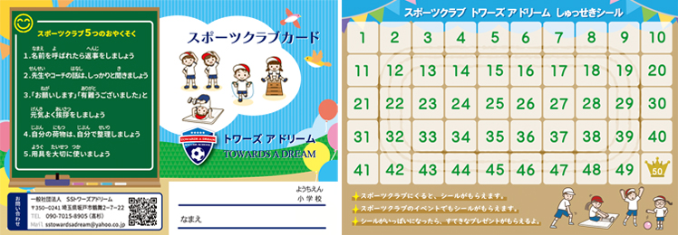 当スポーツクラブでは、園児クラス、1.2年生クラスを 対象に、スポーツクラブカードをお渡ししています。